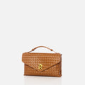 crossbody tas van Bottega Veneta in de kleur amber in het materiaal lamsleer