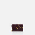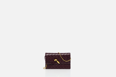 clutch van Bottega Veneta in de kleur dark barolo in het materiaal lamsleer
