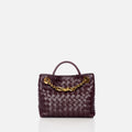 crossbody tas van Bottega Veneta in de kleur dark barolo in het materiaal lamsleer