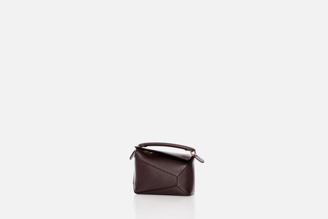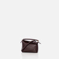 crossbody tas van Loewe in de kleur dark chestnut in het materiaal kalfsleer