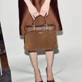 top-handle bag van Prada in de kleur cacao in het materiaal suede
