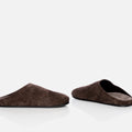 slipper van The Row in de kleur laquer brown in het materiaal suede