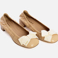 ballerina van Prada in de kleur sabbia in het materiaal kalfsleer