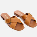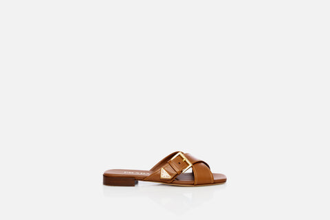 slipper van Prada in de kleur cuoio in het materiaal kalfsleer