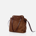 schoudertas van Prada in de kleur cacao in het materiaal suede