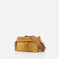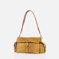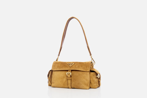 schoudertas van Prada in de kleur canella in het materiaal suede