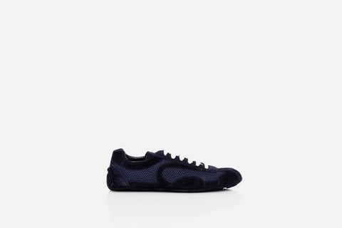 sneaker van Prada in de kleur bleu in het materiaal suede/mesh