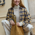 schoudertas van Chloé in de kleur gold khaki in het materiaal suede