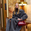 top-handle bag van Jacquemus in de kleur burgundy in het materiaal kalfsleer