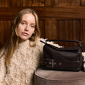 crossbody tas van Loewe in de kleur dark brownie in het materiaal kalfsleer