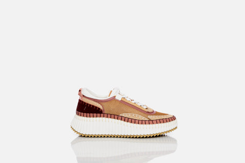 sneaker van Chloé in de kleur toasted brown in het materiaal kalfsleer