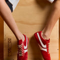 sneaker van Dries Van Noten in de kleur red in het materiaal suede