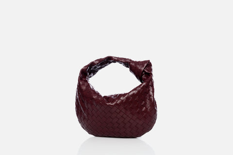 schoudertas van Bottega Veneta in de kleur deep mahogany in het materiaal lamsleer