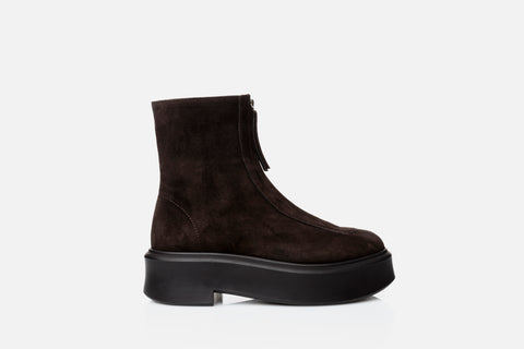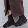 enkellaars van The Row in de kleur dark brown in het materiaal suede